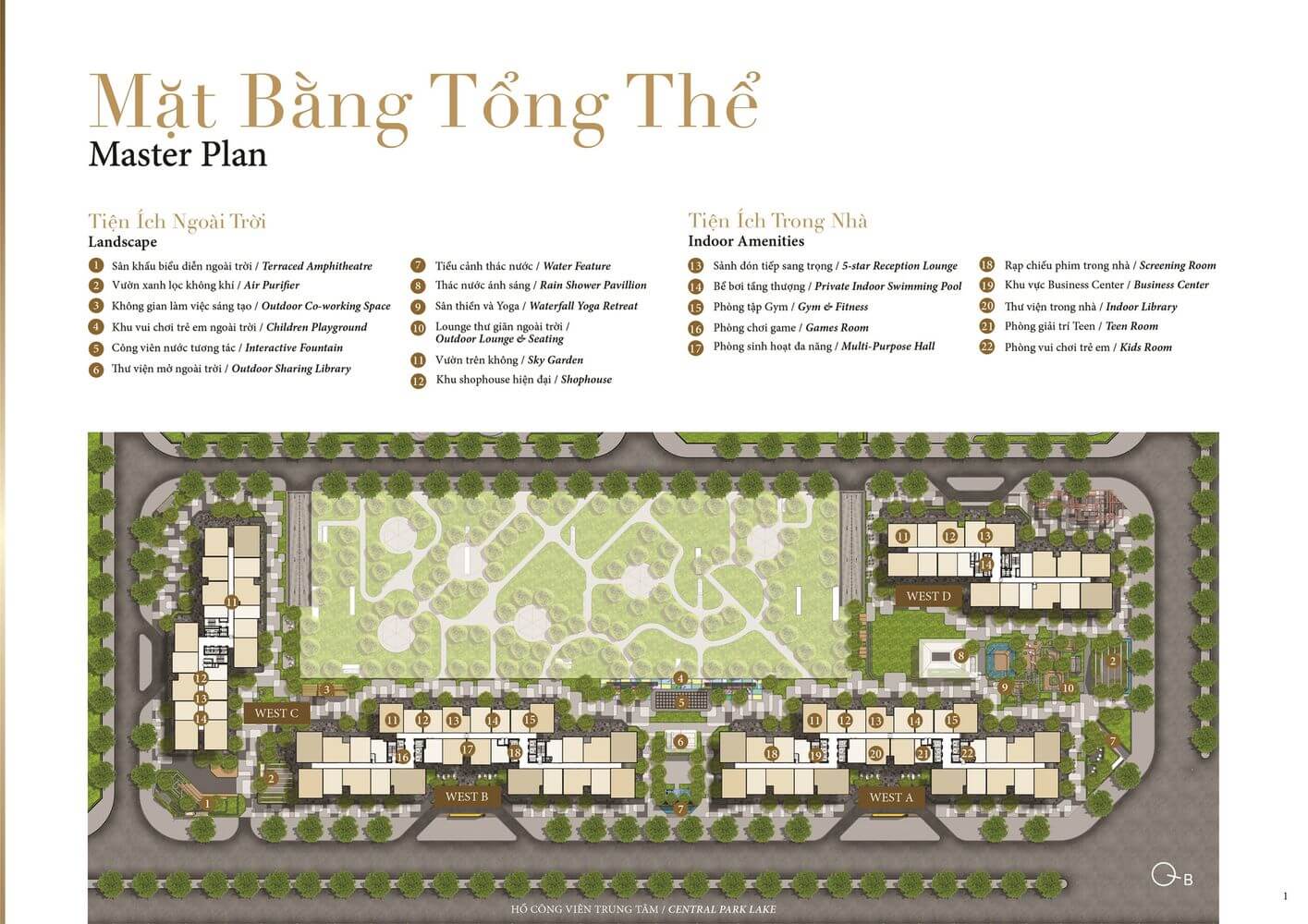Masteri West Heights có 22 tiện ích nội khu cao cấp dành riêng cho cư dân, trong đó có những tiện ích nổi bật như